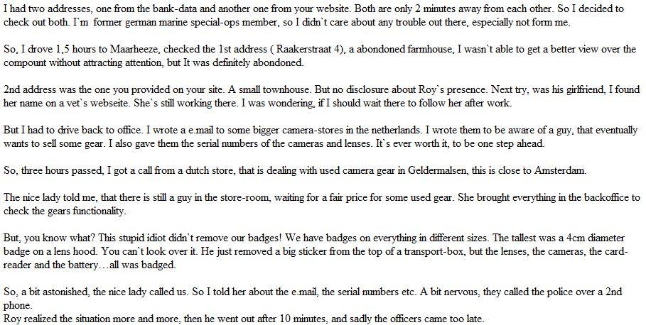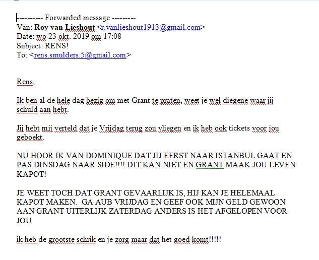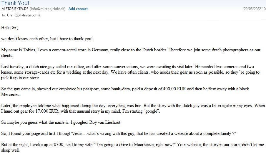 As agreed, our complaint against Roy Van Lieshout, who defrauded us for the sum of 3471 euros, 2 trips to Turkey, see messenger