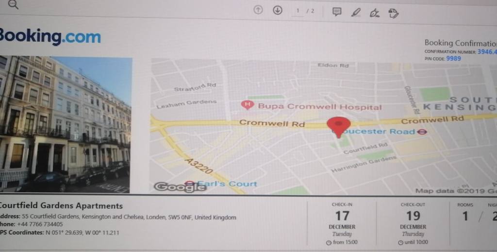 The first thing we received was an online confirmation by e-mail via Hotels.com, the vouchers were to follow this year.